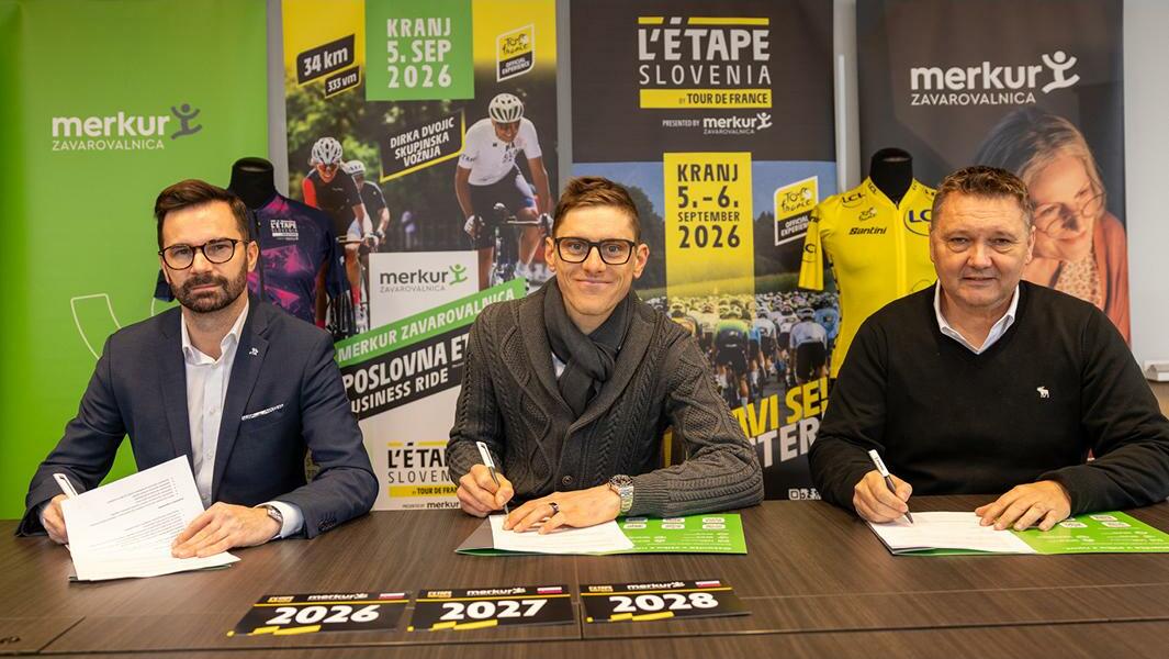 Ljubljana, 22. december 2025. Merkur zavarovalnica s podpisom triletne pogodbe nadaljuje vlogo imenskega partnerja kolesarskega festivala L’Étape Slovenia by Tour de France. Partnerstvo predstavlja nadgradnjo letošnjega uspešnega sodelovanja ter odraža dolgoročno zavezo Merkur zavarovalnice projektom, ki spodbujajo aktiven življenjski slog, timski duh in dobrodelnost, saj bo del sponzorskih sredstev namenjen tudi Fundaciji Mateja Mohoriča.